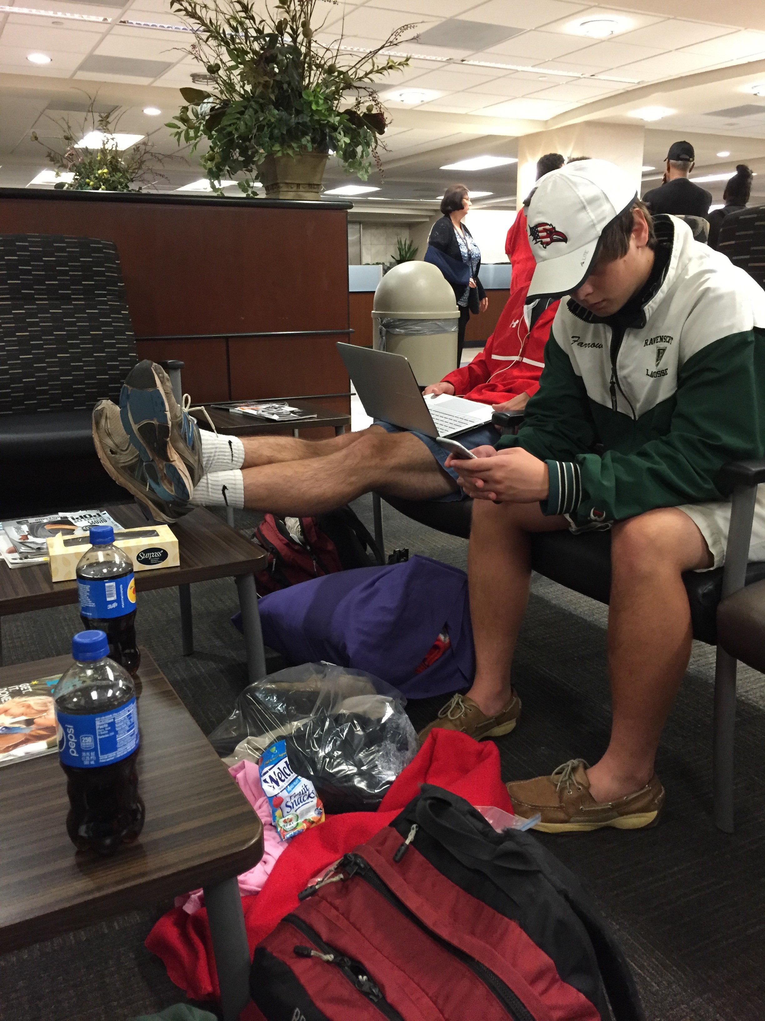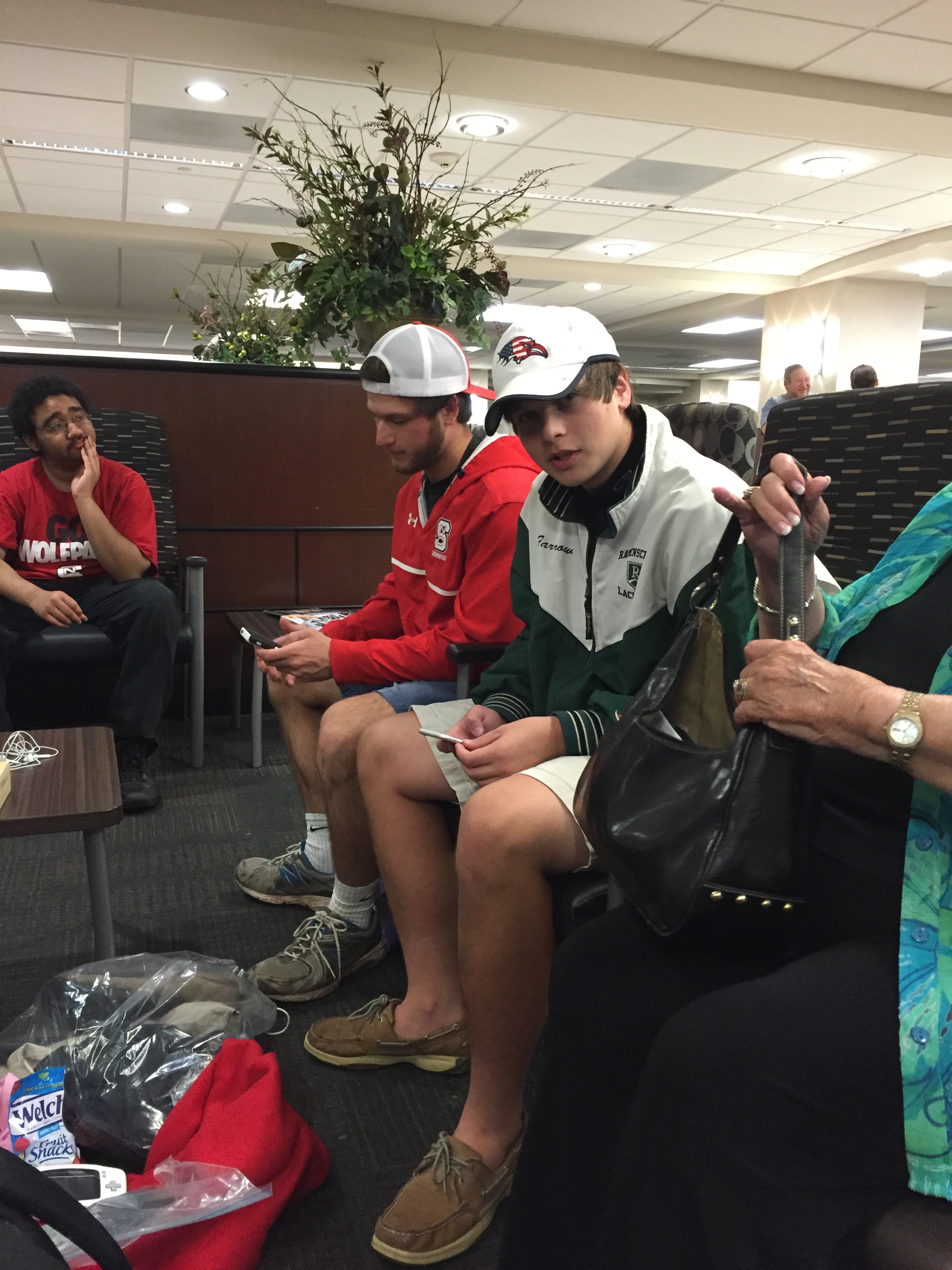Thing 1&2 taking up as much space as possible in the recovery waiting room.