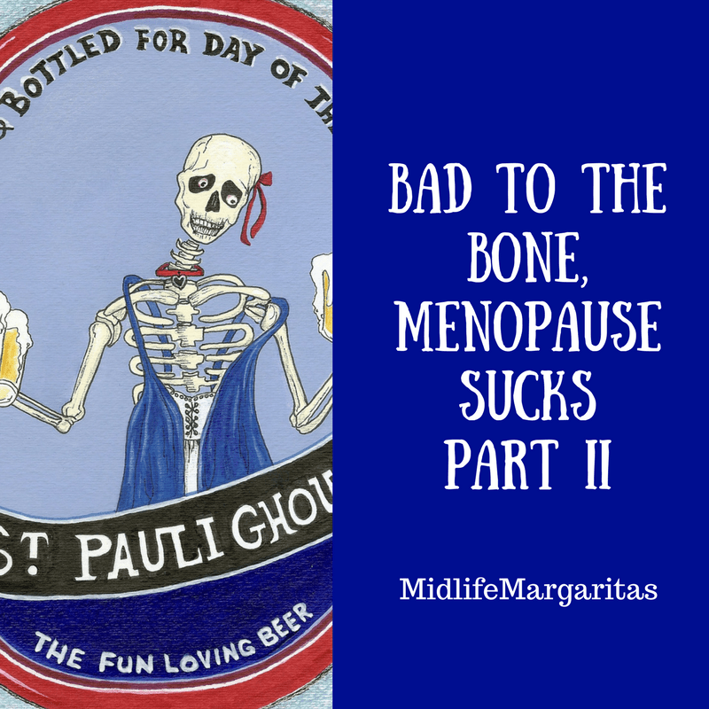 So now that I am literally falling apart, every bone in my body aches. Even if it’s in my head. Oh and I am not supposed to have more than 3 alcoholic drinks a day! Does she even know me? So menopause sucks. All the way to my bones.