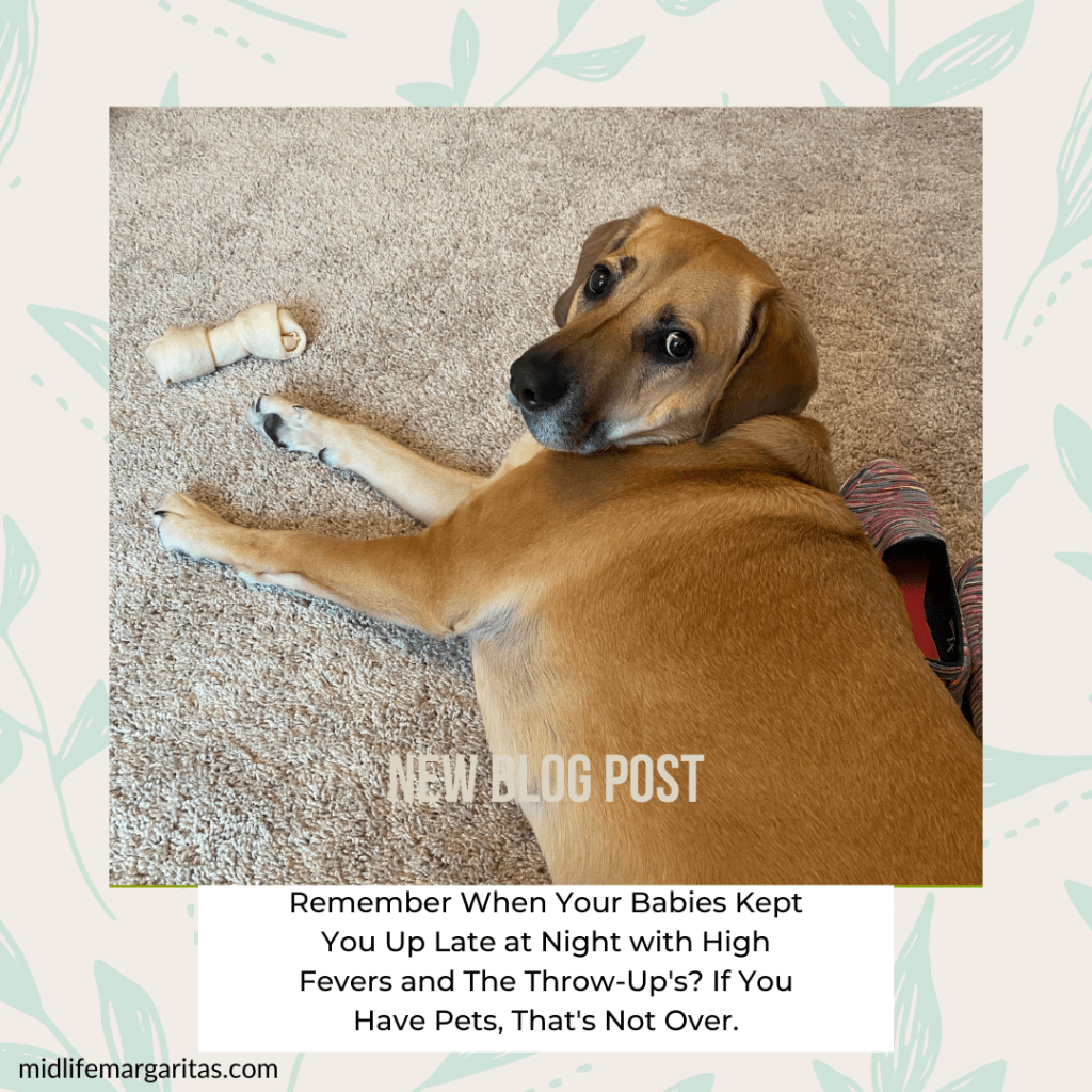 Now it’s the dog. I found him retching into a corner of my bedroom and it sounded like he was dying a slow but extremely loud death. Why is it always the corner with this one? So, since the hubster was still snoring away into his C-pap machine and not stirring a muscle, I got up and followed the dog around the house as he tried desperately to vomit into all the corners of our apartment. I felt so bad for him. No idea what he’d eaten or gotten into, but it had to have been horrible. He couldn’t get anything to come up (love those dry heaves) so he began licking carpet and eating random floating tumbleweeds of dog hair. This must be like eating grass to get the devil juice to come out.