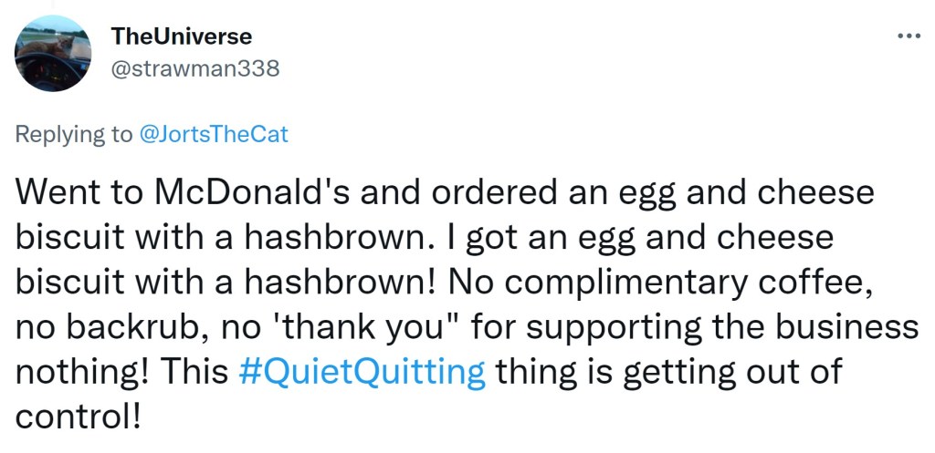 4. Quiet Quitting. A TikTok trend or has it been around a long time? What is quiet quitting? It’s when you decide to no longer go above and beyond in your job. Work is not your life and doing just what your job description says should be enough to please your employer and save your mental health and keep from burnout. Some say it’s a TT trend but honestly, I think it’s been going on for many years. And has picked up in popularity since Covid showed up. No more “hustle” culture. And while that seems like a great idea for work/life balance, it could end up boring us to death in our jobs. So, what say you?